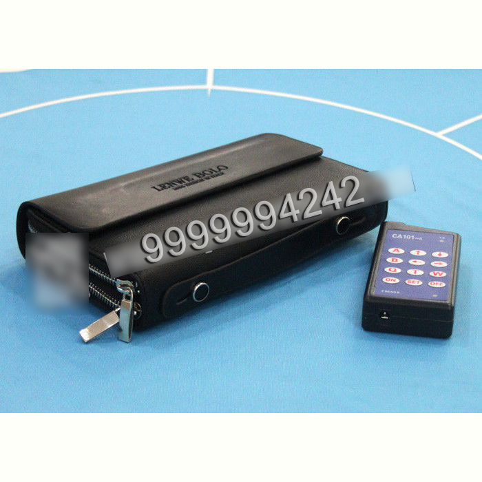 It is a new style leather wallet for man, it looks nice and elegant, it is a common wallet for modern man. While it is also a cheating wallet, but how it cheats? As it has a mini camera inserted inside which is able to scan the sides edge bar-codes marked playing poker cards, so that the poker analyzers can analyze the bar-codes and speak who are first winner and second winner when you play Texas Hold’em game or Omaha 4 cards game or Omaha 5 cards game, or Russian seca game or flush game, while analyzers will tell you what the cards are when you play the game - report one by one which no matter is from top to bottom or from bottom to top, you just need to wear the micro wireless earpiece.