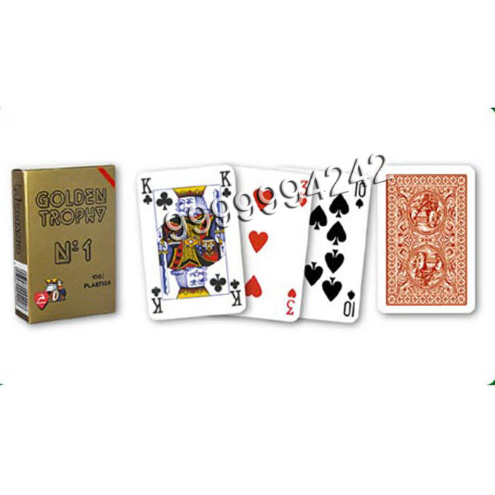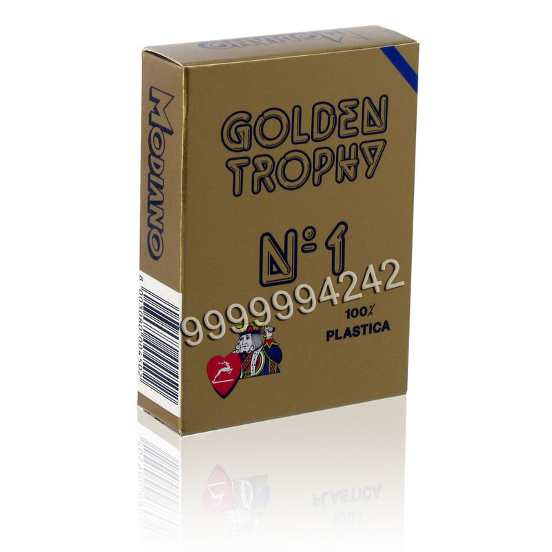 Modiano Golden Trophy Card is original from Italy, with special quality control, it is considered the upscale and luxurious cards in the casinos all over the world. The card can maintain the Original form though being folded a million times. Modiano Golden Trophy Card 4 Regular Index is 4 PIP index set which have smaller pips but large picture in the middle then a jumbo index. This set is beneficial to play Texas Hold’EM, for game players can view their hole cards more efficient.