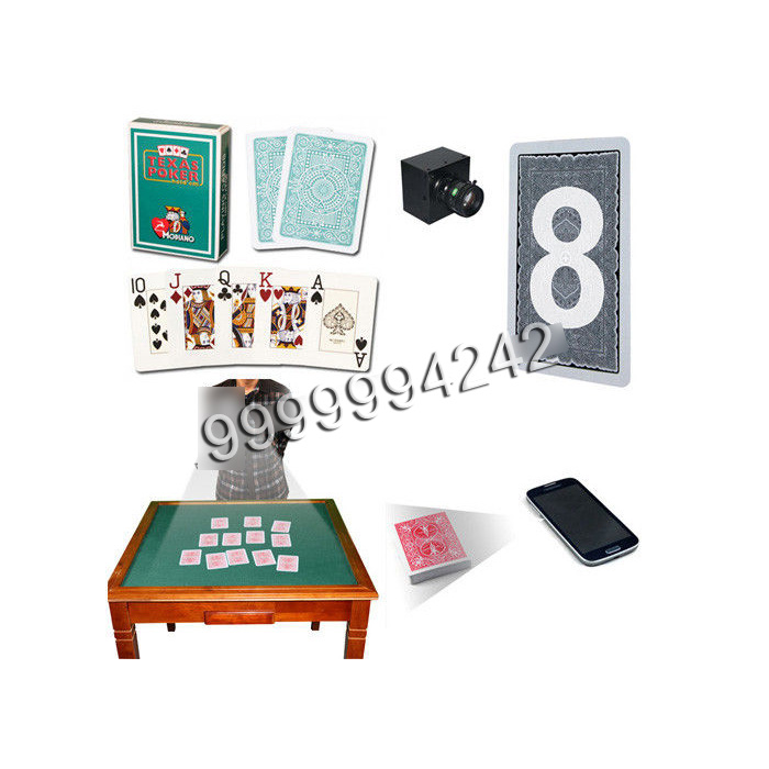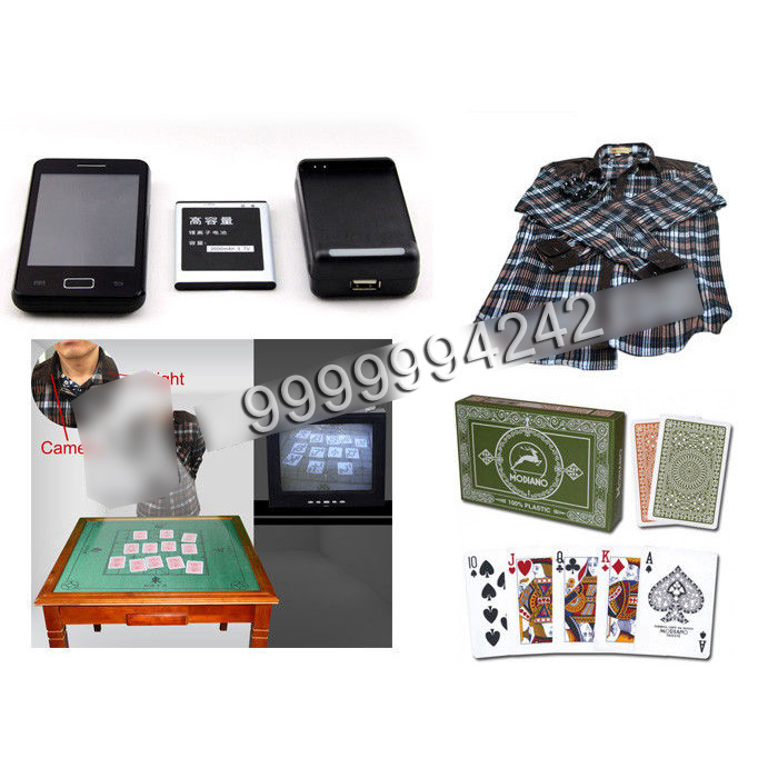 The collar cameras will be able to see the markings on the back of playing cards put on the table and can see very clearly, you just need a partner in another room and sit in front of TV or computer, he will be able to see the marked playing cards on the table, and then he will tell you what the cards are of other players, so that you will know all the cards of all players and win the poker games. The range of camera to see the marking playing cards is about 1.2m*1.2m area.